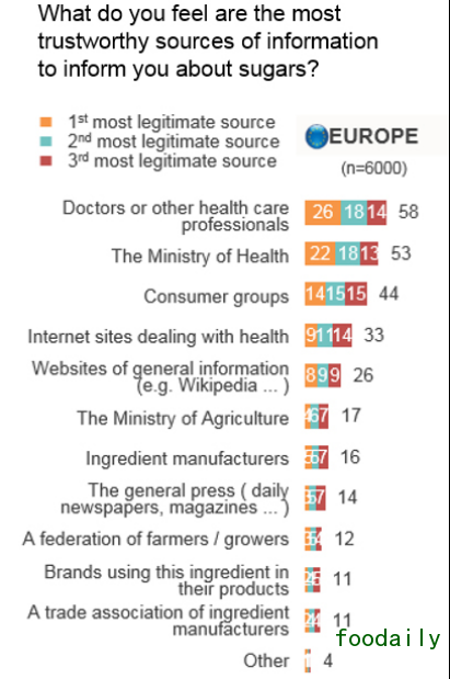 研究结果表明,消费者认为医疗保健专业人员和政府部门是最可靠的健康信息来源,而配料制造商和使用配料的品牌被认为不可信。