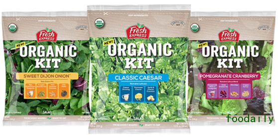 Fresh Express精选有机食材推出了新款Fresh Express Organic Salad Kits。这款产品中的蔬菜和沙拉均来源于美国农业部认证的100%有机食品。