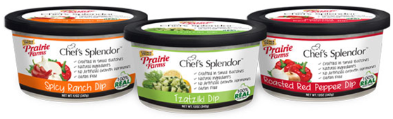 Prairie Farms Dairy正在推广其Chef‘s Splendor Dips系列产品,目前主要有三种口味:香烤红辣椒、酸奶黄瓜酱和辛辣田园沙拉酱。这款无麸质蘸料是由未经人工生长激素饲料喂大的奶牛生产的牛奶和奶油制成的。