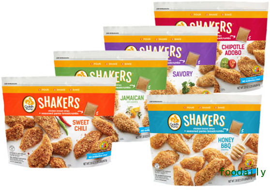 Gold’n Plump Shakers产品有香咸味,甜辣味,牙买加味,蜜烤味和墨西哥辣酱味多种选择,其品质新鲜,未经冷冻。将去皮无骨鸡胸肉条切成小块既可当零食又可作为菜肴的配料。每20盎司的摇摇杯中含16盎司的鸡肉,4盎司的调味面包屑,以及用于摇匀的拉链袋。