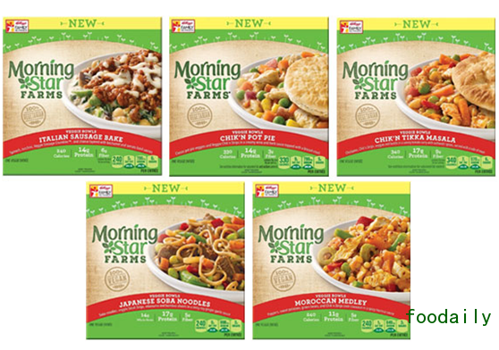 Kellogg公司的MorningStar Farms品牌刚推出了5种新口味的加热即食便餐。新产品不仅具有国际特色还在原始风味的基础上做了创新。