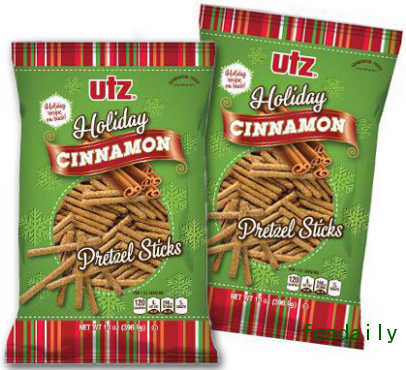 Utz Quality Foods在其新品Holiday Cinnamon Pretzel Sticks(假日肉桂椒盐脆饼棒)中使用了当季香料。这款脆饼棒口味微咸,使用全麦制作,不含饱和脂肪酸,每份所含热量为120大卡。