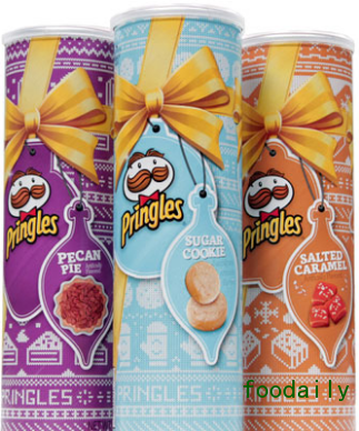Kellogg公司旗下品牌Pringles推出了一款甜口的季节性风味:糖果曲奇味。这一全新假日零食加入了Pringles家族,与核桃派味及咸焦糖味一起组成了该品牌的季节性风味大军。
