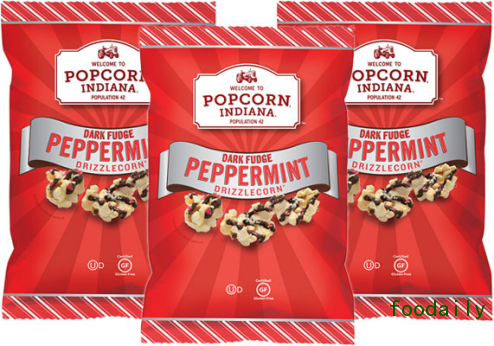 Popcorn公司推出了薄荷口味新品,以此推动其爆米花产品的销售。全新的Dark Fudge Peppermint Drizzlecorn是将爆米花用黑软糖包裹并撒上大块薄荷棒棒糖加以点缀的产品。