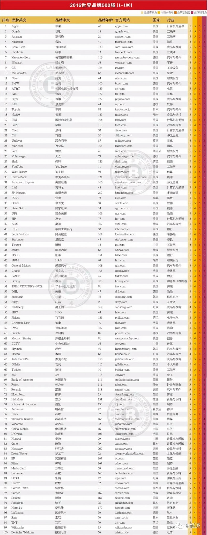 北京时间12月26日,世界品牌实验室(World Brand Lab)在美国纽约正式发布2016年度《世界品牌500强》排行榜。苹果、谷歌、亚马逊排前三,美英法为第一阵营,中国仅36个品牌入榜。