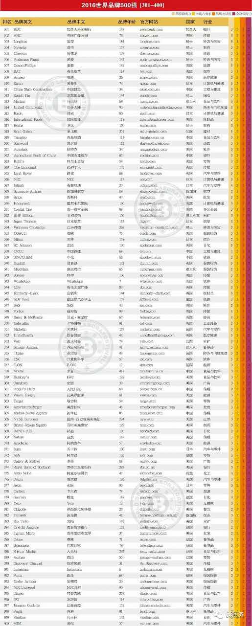 在中国入选的品牌中,国家电网居榜首,中国工商银行、腾讯敬根提后。值得一提的是,此次BAT三巨头均入选,其中腾讯排43位,百度排220位,阿里巴巴为264位。