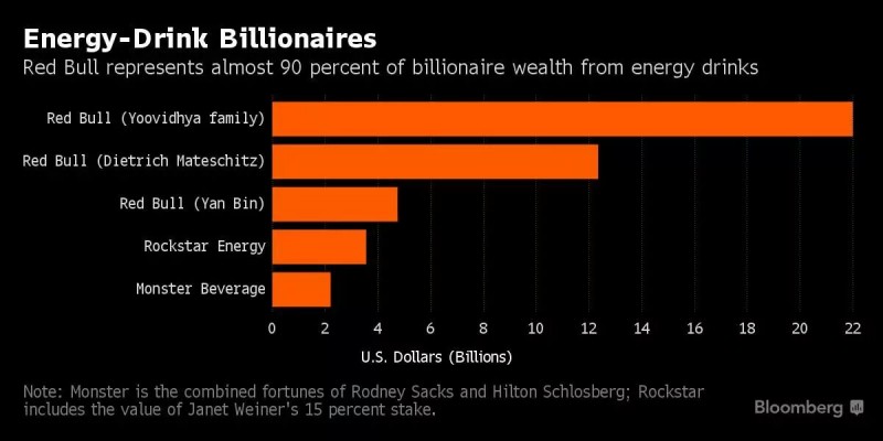 通过修改配方、创造一个围绕肾上腺素燃料的极限运动文化的全球品牌、迎合睡眠不足的学生和卡车司机到社交常客以及寻求刺激的每一个人,他们共同创造了财富。现年72岁的马特西茨,控制着123亿美元的财富,他被列为彭博指数上第80名最富有的人。