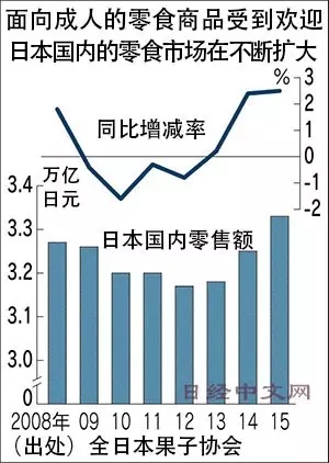 繁荣的旅游业为日本休闲食品品牌打响了知名度,也带来了丰厚的收入,全日本果子协会数据显示,2015年日本零食的国内销售额较上年增长2.5%,约为3.33万亿日元,其中很大一部分都是海外游客贡献的,不少海外的消费者已经把目光从奢侈品转向了食品。考虑到此种情形,日本众多零食企业选择了积极走向海外,扩展亚洲市场。