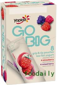 通用磨坊旗下优诺品牌推出了Go Big低脂酸奶,挤压式包装,每份产品包括8小袋,每袋4盎司,包括樱桃、凤梨芒果、混合莓果和草莓口味。