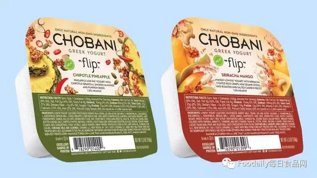 不过咸味并不是唯一主角,甜品风味或也在不断发展。在Flip系列中,Chobani公司推出了一款花生焦糖味新品(添加了烤花生、牛奶巧克力和耐嚼焦糖碎的焦糖味低脂希腊酸奶)。在Simply 100系列中,该公司推出了柠檬酥皮脆片酸奶(添加了柑橘白巧克力和柠檬饼干的柠檬味无脂希腊酸奶)。