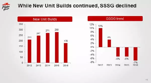 在谈到必胜客休闲餐厅时,他指去年新建门店178家,升级改造69家。不过在关键指标同店销售上却录得7%的下降,但他指必胜客的利润率得到改善,营业利润1.50亿美元。