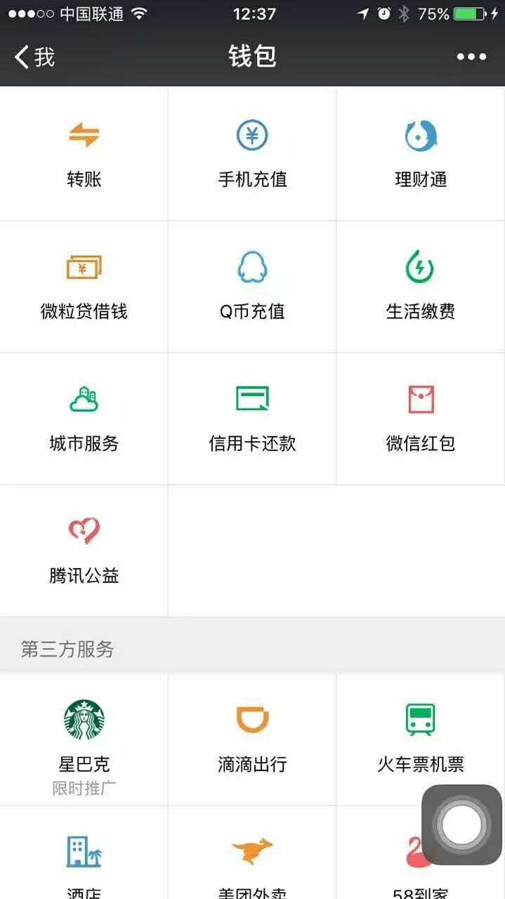 其实,今天上午,心思细腻的看官们也许已经在自己的微信钱包发现了小惊喜。如下图,钱包内的第三方服务,多了个星巴克的入口。