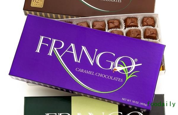 Frango 1918年由西雅图的百货公司 Frederick & Nelson 创办,是芝加哥和西雅图地区的悠久巧克力品牌。后来,美国百货 Marshall Field’s 收购 Frederick & Nelson 时,Frango 开始拓展芝加哥市场。2005年,梅西百货收购 Marshall Field’s后,Frango 品牌得以拓展至全美市场。
