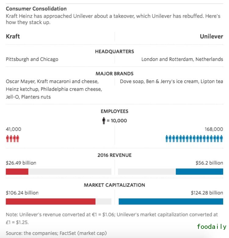 昨天,美国食品巨头卡夫亨氏提出了一个非常出人意料的并购:以 1430 亿美元的价格收购联合利华。