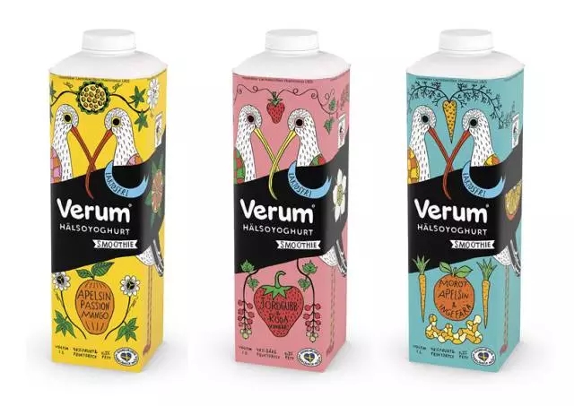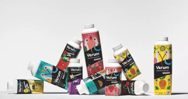 除了健康和美味的产品属性,Verum认为精巧的包装设计能更好地传达产品特性和定位,在现代市场中更符合年轻消费者的消费需求。于是,Norrmejerier联合创意机构Saatchi&Saatchi Stockholm设计出生动活泼的包装瓶,瓶身上采用鸽子、水果和植物等元素制作而成的插图,传递了Verums独特的瑞典北部文化,将传统品牌和现代艺术相结合,更快的融入市场。