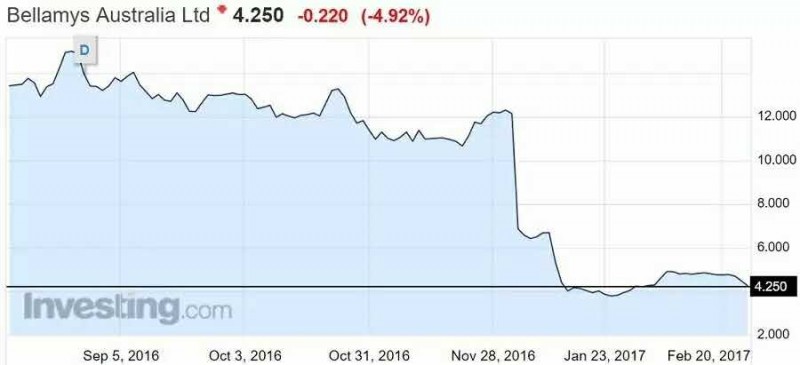 小编去年12月2日曾报道,在澳洲上市的热门“海淘”奶粉贝拉米当天股价暴跌40%,原因是该公司发公告透露,中国监管政策的变化使该公司出现了临时的销量上的混乱。其后,该公司更出现大股东“逼宫”等剧情。