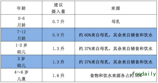 (4)3岁儿童水摄入量也参考此标准,每日饮水量约为1.3升。