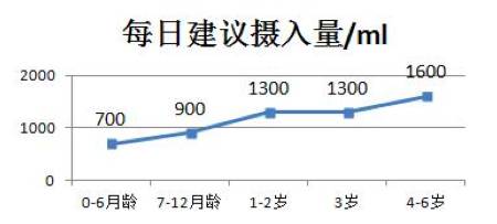 (3)1至2岁婴幼儿来说,由母乳提供的水每天为480毫升,来自辅食的水分每天要保证在825毫升。