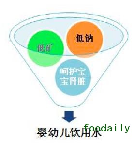 随之而来的是,普通的婴幼儿饮用水也从名字上升级了,拔高成为婴幼儿专用水,很多家庭关注于此,水市场逐步被打开。