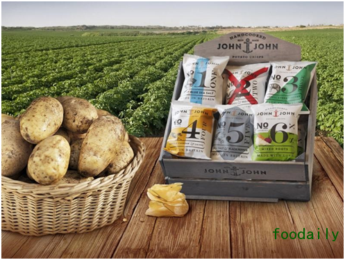 John&John将清洗和切厚片的土豆在纯葵花油中煎炸,在还未冷却时,撒上香料,产品可带来薯片原有的酥脆和新鲜感。