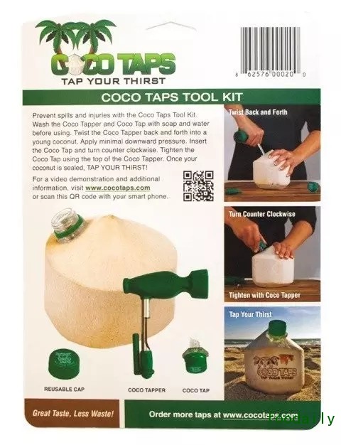 Coco Taps Tool Kit是Coco Taps公司第一个商业产品,包含一个轻击锤和两个塞子盖口,在健康食品店和亚马逊网站均有售卖。Coco Taps品牌和全食超市的理念不谋而合,Zaldivar经过了一年的努力,成功将这款套装工具产品推入全食超市。