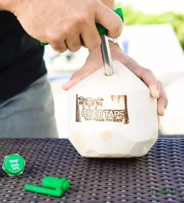 想要喝到原生态的新鲜椰子水,现在可以试试美国全食超市(Whole Foods)卖的这款Coco Taps椰子水产品啦!你绝对没想到,他们还专门配备了一套工具,让货真价实的椰子水可以很方便地被喝到…
