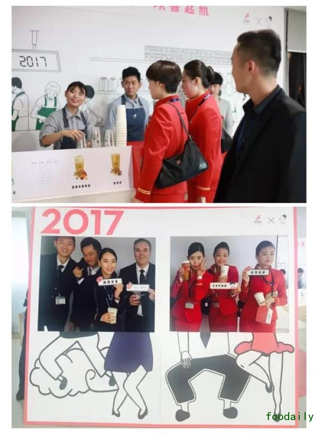 早在喜茶进入上海之前,喜茶早已经开始了品牌合作的尝试。在去年,喜茶to go系列活动与深航进行合作,进入深航总部,为早间机组人员送上热茶,送去最早的温暖和关心,不再局限于年轻人聚集的场所,不仅仅是贴近年轻人的生活那么简单,而是与品牌合作,提升好感度。