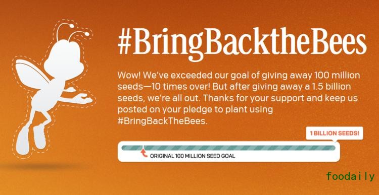 通用磨坊希望领到种子的人在适当区域种下它们,让蜂有更多采蜜的地方。不过通用磨坊在上周五更新了网站公告,说实际情况是一共发放了 15 亿种子,公司已经没有种子可以发了。现在你已经无法在网站上找到“免费领取种子”的选项。