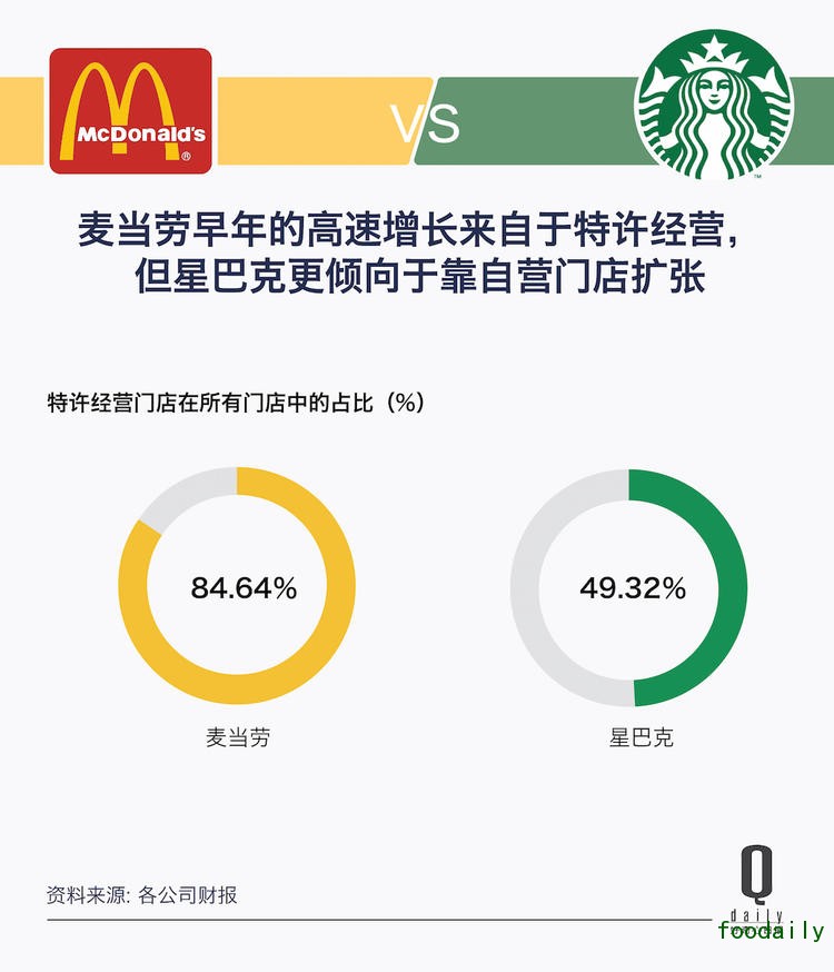 麦当劳靠的是特许经营,而星巴克的几万家门店大多都是自营