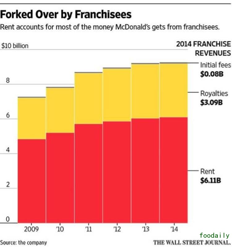 这是雷·克罗克在早期设计麦当劳的特许经营模式时,就留下的一个独到之处:为了加强控制权,所有门店所需要的土地物业,都要由麦当劳总部出面收购,再转租给特许经营商,每年按略低于市场价的水平收购租金。在房地产市场节节攀升时,租金收入会水涨船高;而一旦特许经营商表现欠佳,也可以随时将他们“扫地出门”。一些持有麦当劳股票的对冲基金经理们甚至曾经想过,把麦当劳的餐饮和房地产业务拆分成两部分,以便更有效地管理资产。