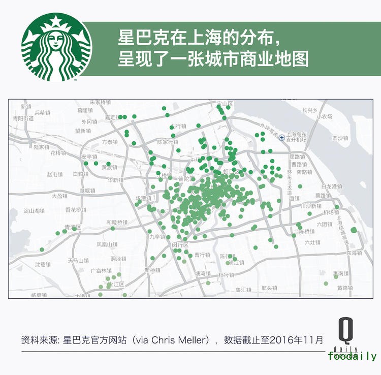 以目前星巴克在全球布局最密集的城市之一上海为例:目前近 500 家门店已经覆盖整个市中心、以及后期开发出来的数个城市副中心。