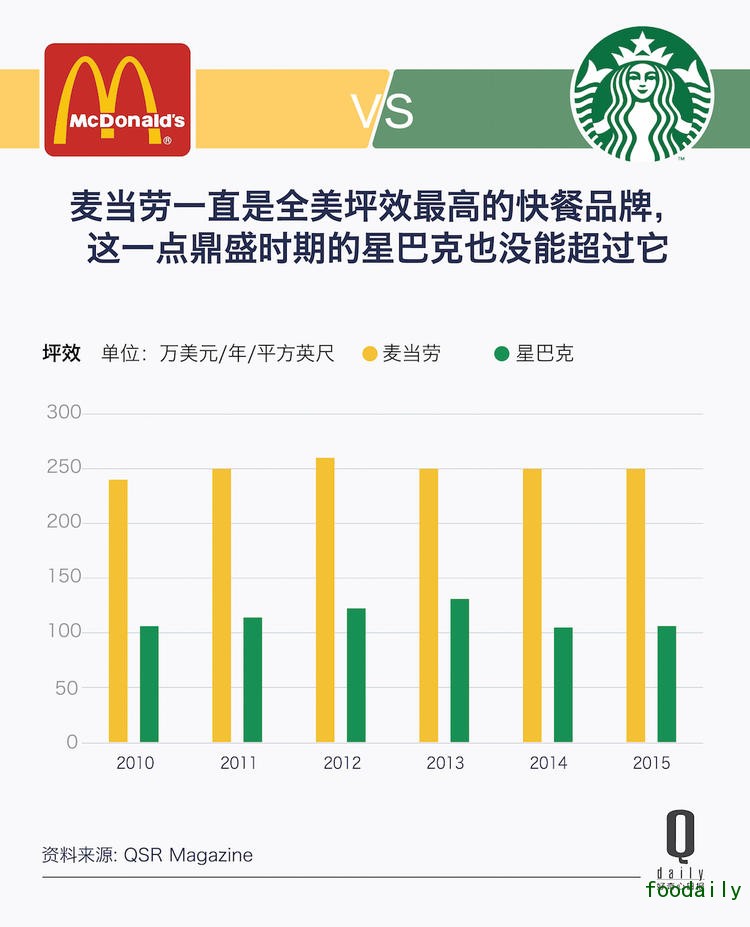 麦当劳比星巴克的坪效高,但每个星巴克员工为公司创造的收益比麦当劳要高