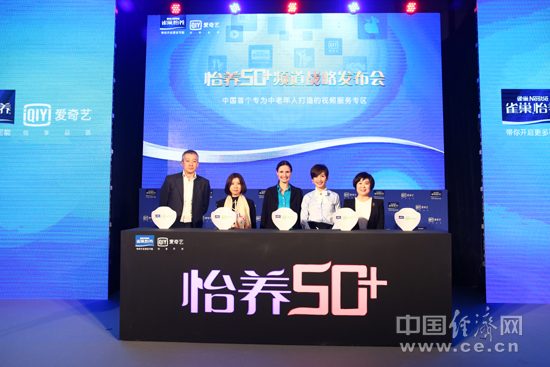 图为雀巢与爱奇艺共同推出中老年人视频服务专区“怡养50+”发布会现场。
