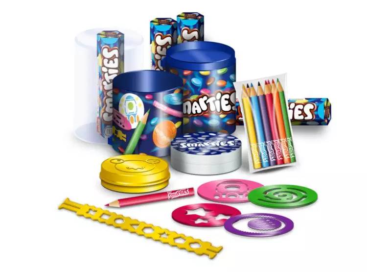 父母也可以考虑从颜色多样,包含望远镜、彩纸、蜡笔等元素的Smarties Telescope或者Smarties Art Tube系列中找到能拿回家当做创意礼物的零食。