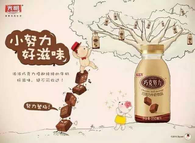 2016年光明乳业升级品牌形象,打出“乐在新鲜”的理念,推出巧克努力、优倍0乳糖、赏味酪乳等多个新品。