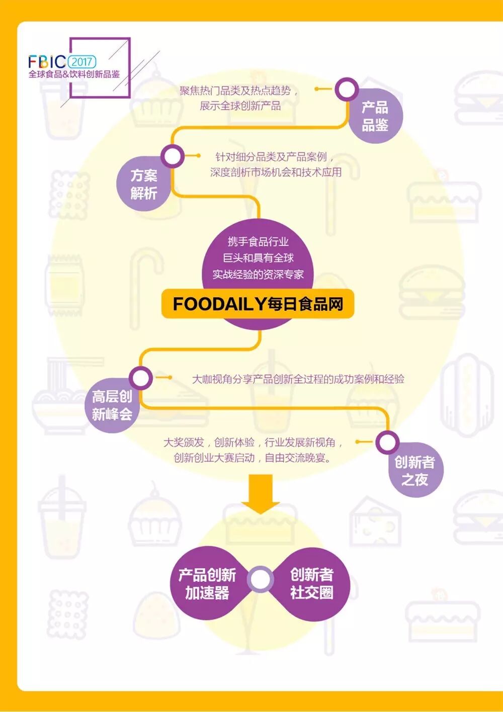 2017 FBIC以“欢聚,与创新共舞!”为主题,将通过产品品鉴、方案解析、高层创新峰会和创新者之夜等多个社交互动环节深度阐述食品行业的“产品创新”,打造中国食品行业的“产品创新加速器”和“创新者社交圈”。