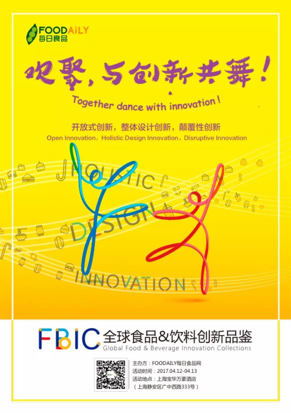 秉承“开放式创新、整体设计创新和颠覆性创新”的理念,FOODAILY每日食品网,携手食品行业创新导向的巨头企业和具有全球实战经验的资深专家倾力打造的“2017全球食品&饮料创新品鉴(2017FBIC)”将于4月12-13日在上海宝华万豪酒店举办。