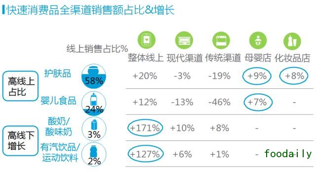 不同品类在线上的发展态势不尽相同,利用跨渠道发展自身品类尤为重要。对于线上发展成熟品类(如护肤品和婴儿食品):注重跨渠道价格,促销管理及线上线下产品差异化管理。线下发展也不错的品类(如母婴店和化妆品店):注重不同渠道间的消费者利益诉求点差异,最大化不同渠道的价值。线上增速较快品类(如酸奶和汽水):需根据品类自身特性设计渠道差异化策略。