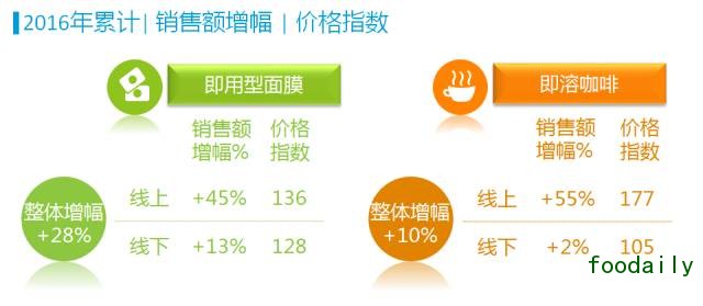 中国消费者近年不断体现的消费升级的趋势在线上将尤为明显。以面膜和即溶咖啡为例,其线上发展趋势远超线下,且线上平均价高于线下。由此可见,消费升级驱动了线上增长。对品牌商来说,了解消费升级的驱动因素是持续增长的关键。