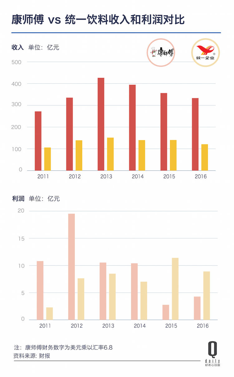 也都没赚到什么钱。统一去年净利润为 6.07 亿人民币,同比下降 27.2%;康师傅为 2.13 亿美元(约 14.7 亿元 人民币),同比下降 24.3%。