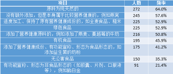 在中粮营养健康研究院消费者与市场研究中心开展的一项关于营养健康食品认知的问卷调查中,受访者对于营养健康食品的认可度较高的特征主要集中在原料为纯天然、本身属于比较营养健康的、适度加工但保留原有营养健康成分以及绿色食品等方面,这体现出消费者对于营养健康食品的理解更多倾向于“天然”、“原料健康”等特征,并且从结果可以看出对食品形态的产品认可度高。全谷物食品符合消费者的认知期待,有较好的市场基础。