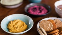 蘸酱有五种口味,分别为香蕉和可可; 甜菜根,辣根和鼠尾草; 胡萝卜,姜和姜黄。
