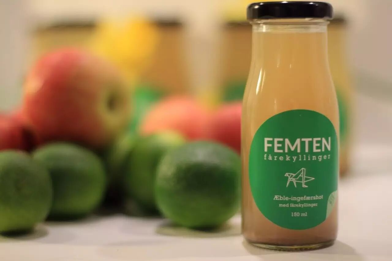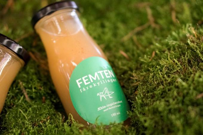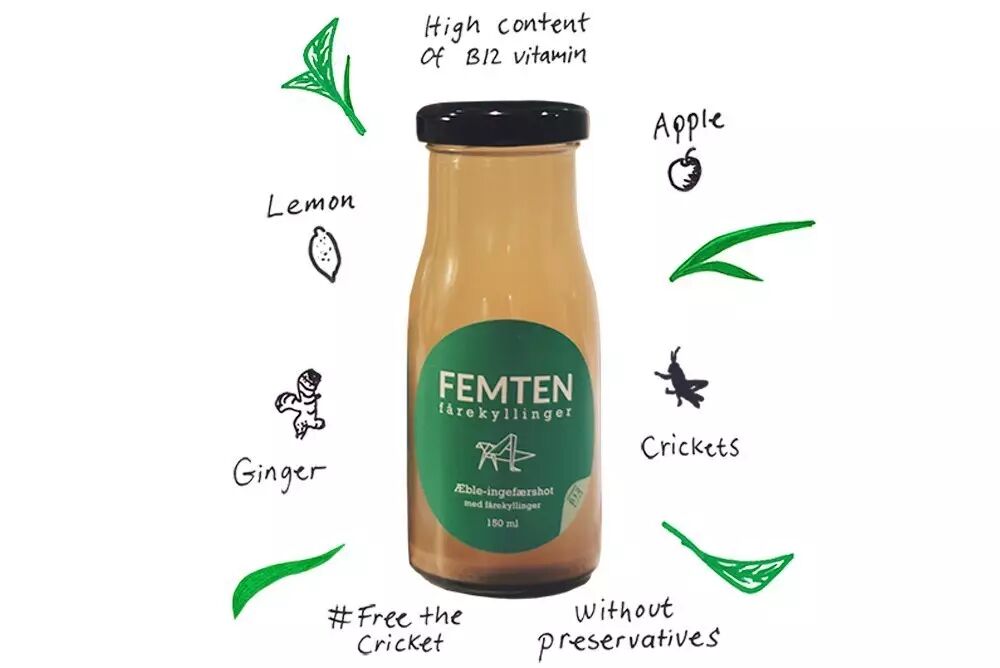 Insekt KBH公司开发的这款果汁本身并没有添加糖或防腐剂,主要通过苹果、生姜、柠檬和“15 蟋蟀”调节风味,FEMTEN Fårekyllinger这个名字在丹麦意味着蟋蟀,KBH是哥本哈根常见的缩写。