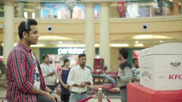 年初,印度肯德基为了推广自己的全新单品「纳什维尔脆皮鸡」(Nashville Hot Chicken),推出了一套互动装置来挑战公众的注意力,给消费者提供了一个用意念打开KFC盒子的体验机会。