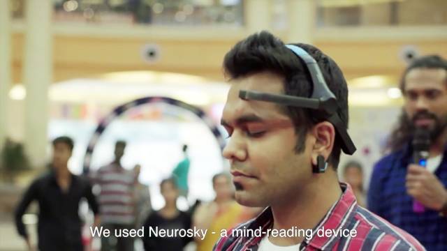 这套互动装置由孟买一家叫Blink Digital的机构提供技术支持。消费者头戴NeuroSky(神念科技)的意念耳机,通过生物电传感器来监测他们的大脑活动,分析每位挑战者的注意力集中水平。当挑战者者的注意力达到100时,装有肯德基纳什维尔脆皮鸡的盒子会被打开。