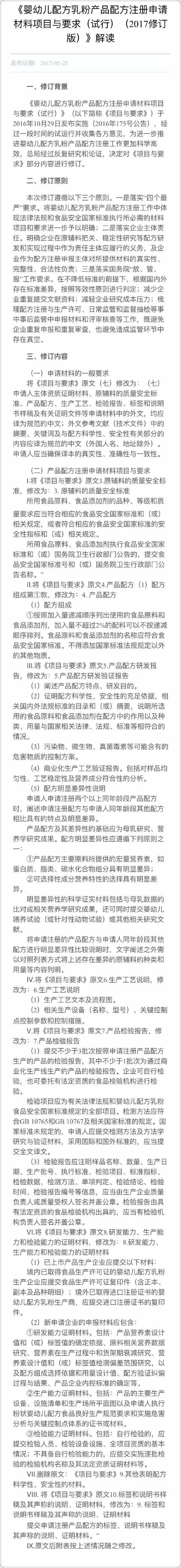 小食代看到,同时发布的另一份名为“《婴幼儿配方乳粉产品配方注册申请材料项目与要求(试行)(2017修订版)》解读”的文件,提出为进一步推进婴幼儿配方乳粉产品配方注册工作更加科学高效,总局经过反复研究和论证,决定对《项目与要求》部分内容进行修订。