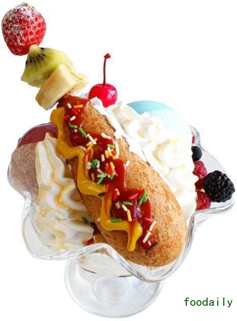 魅力美国热狗圣代:意想不到的酥脆外皮与冰淇淋搭配出完美的口感。