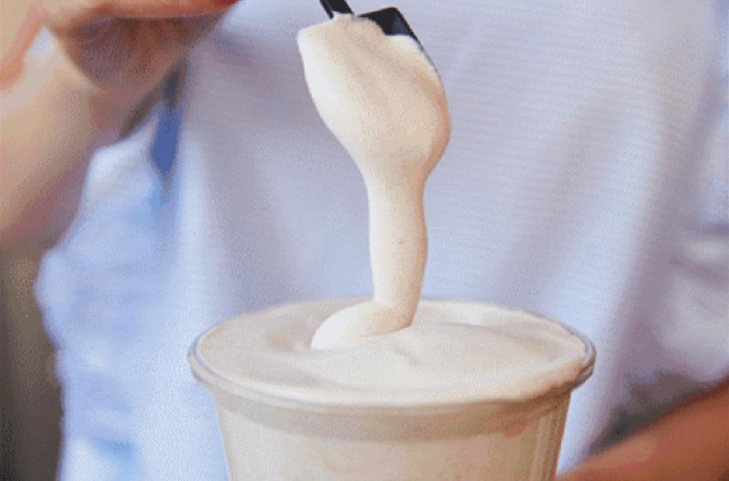 奶盖非常浓稠厚实,用力挤杯子也不会轻易流下来。