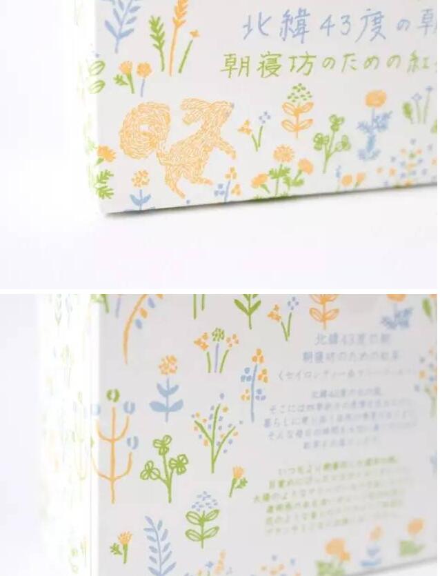 主题为“从北纬43度的北国来观赏四季风景变化”,包装上描绘的是森林植物和小动物的绘画,温暖可人。