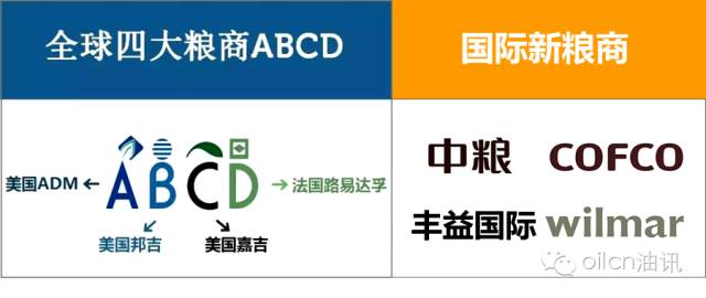 根据名称的首字母,美国ADM、邦吉Bunge、嘉吉Cargill和法国路易达孚Dreyfus被合称为全球四大粮商“ABCD”,它们都是拥有百年以上历史的跨国企业,拥有对上游原料、期货,中游生产加工、品牌和下游市场渠道与供应的控制权。目前世界粮食交易量的80%都垄断性地控制在他们手中。